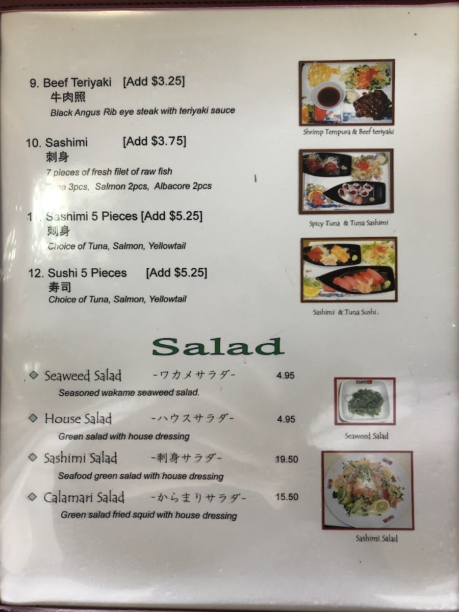 Overall, Tashiro Restaurant offers a well-rounded menu that blends classic Japanese flavors with a few creative twists. Whether you're there for a light salad or a full-course meal, every dish is crafted with care and attention to detail.